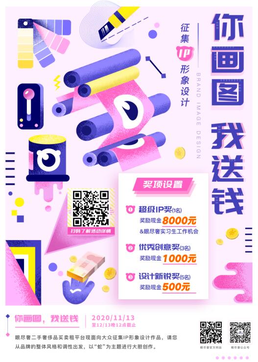 為提升品牌識(shí)別度,拉進(jìn)用戶距離,眼盡奢現(xiàn)面向全國(guó)各大高校、社會(huì)征集形象設(shè)計(jì)作品。要求需符合眼盡奢二手奢侈品買賣租平臺(tái)整體的風(fēng)格調(diào)性,以“蛇”為主題進(jìn)行大膽創(chuàng)作。參賽作品需具有原創(chuàng)性,擁有完整的自主知識(shí)產(chǎn)權(quán),不得仿冒國(guó)內(nèi)外已上市產(chǎn)品或侵犯他人知識(shí)產(chǎn)權(quán),嚴(yán)禁抄襲、剽竊行為。