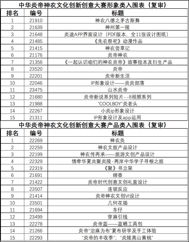 附:中華炎帝神農(nóng)文化創(chuàng)新創(chuàng)意大賽初審入圍表