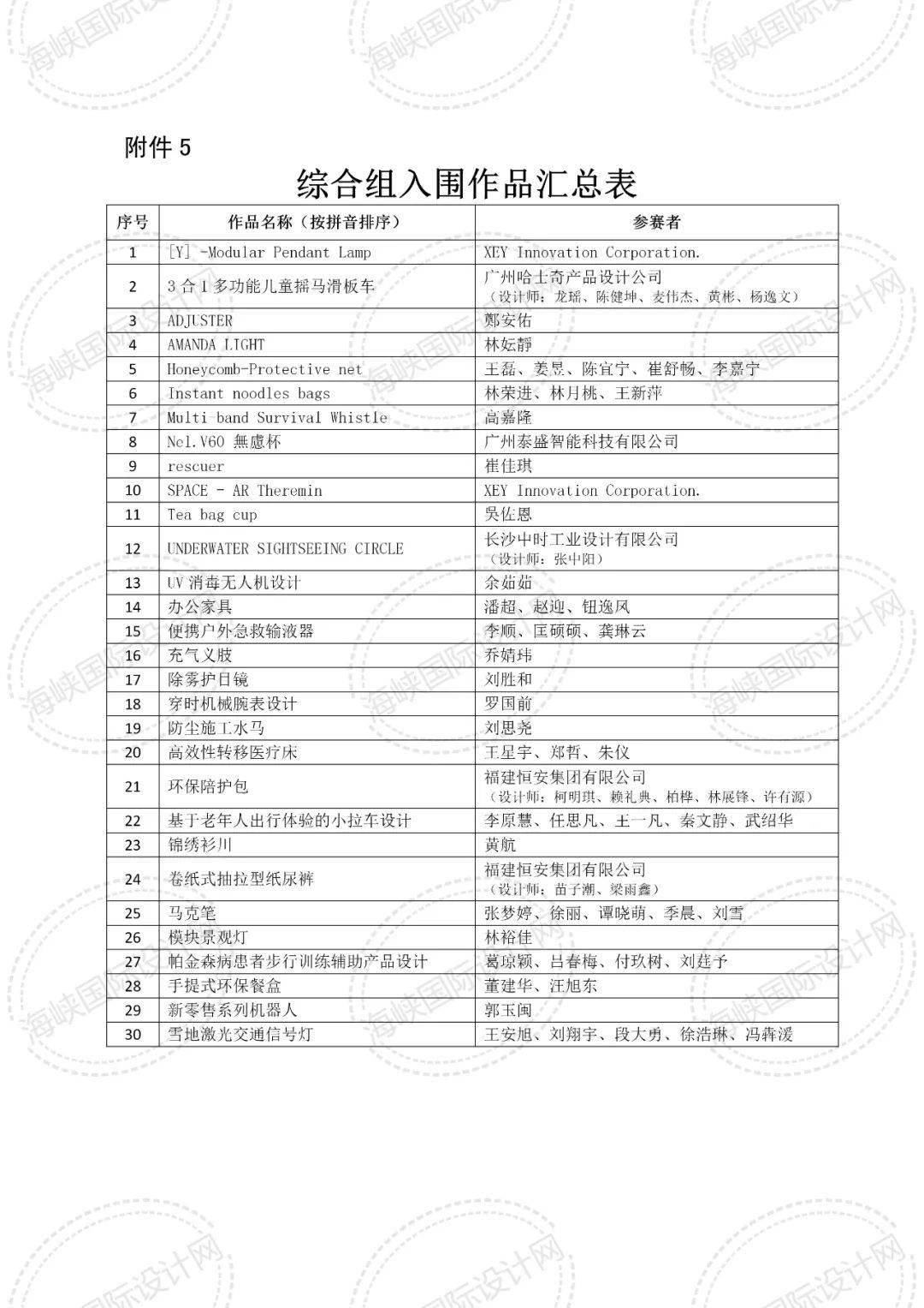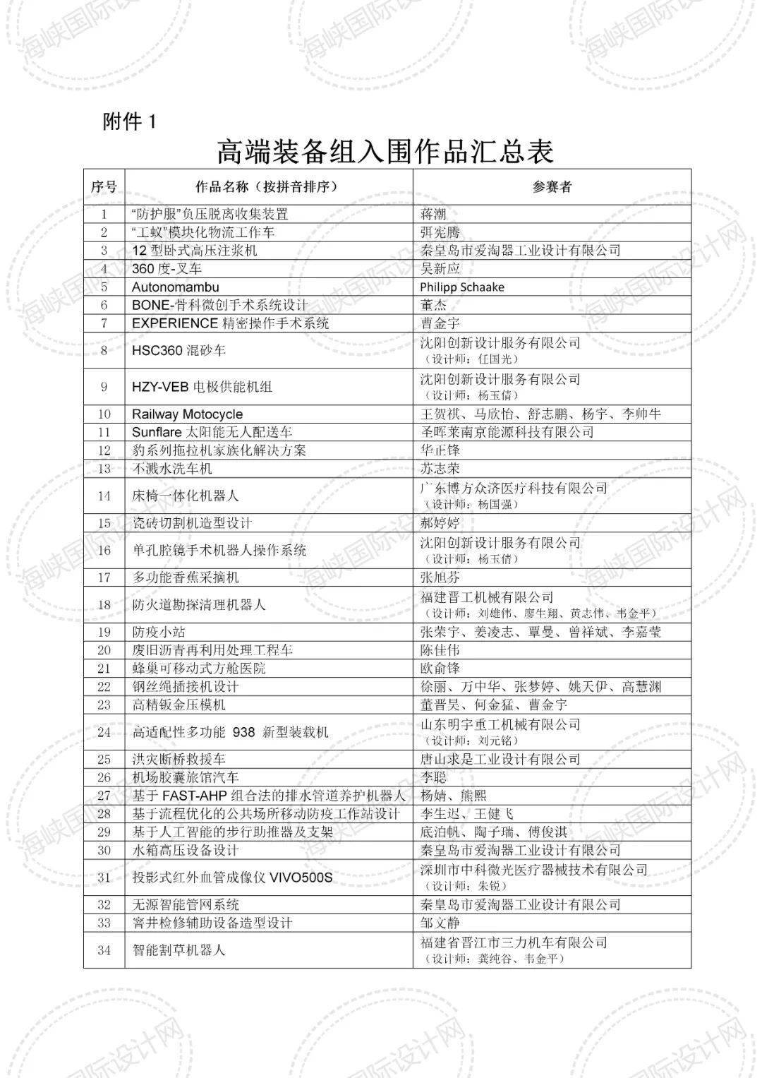 附件:1.高端裝備組入圍作品匯總表