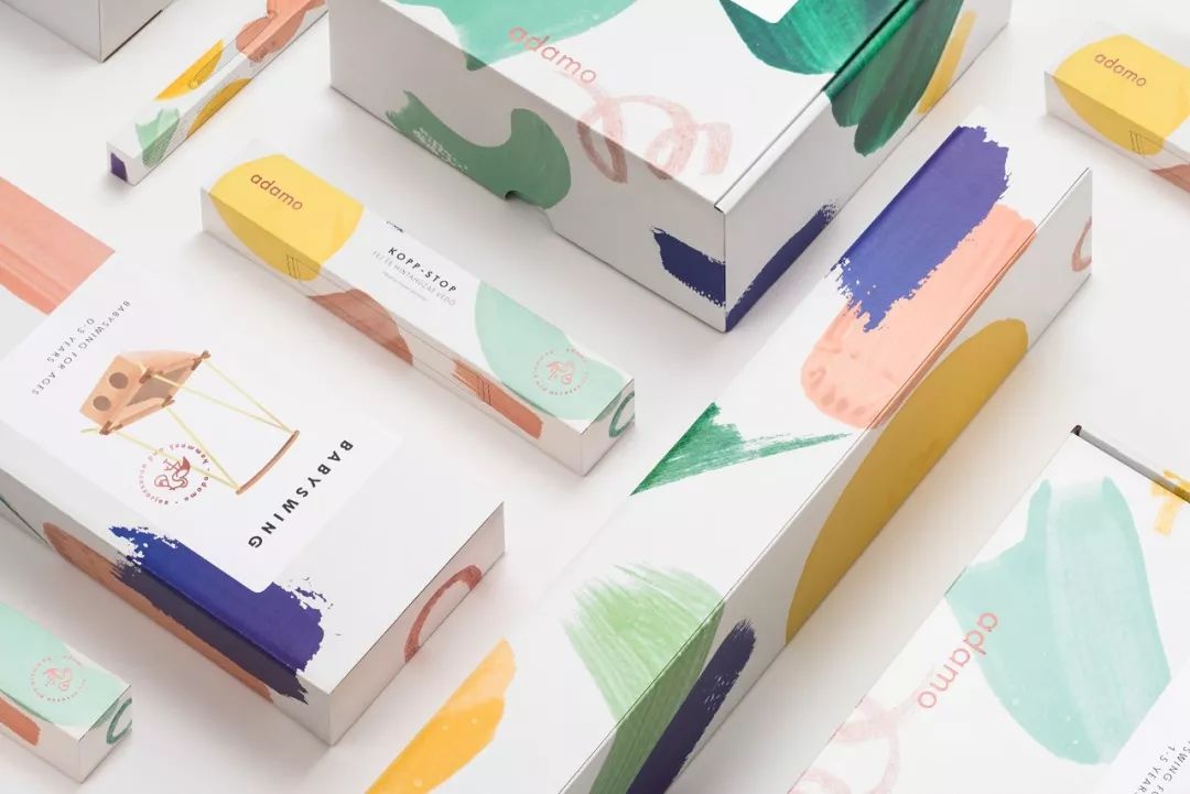 品牌主要出品兒童用的吊床和秋千椅, 產(chǎn)品通常是穩(wěn)重耐用的色彩。而為了展現(xiàn)童趣和快樂(lè),在包裝上用了多彩的涂鴉作為裝飾,像是無(wú)邪的孩童涂抹。