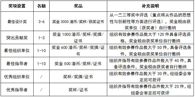 作品獎項設(shè)置,詳請見下表: