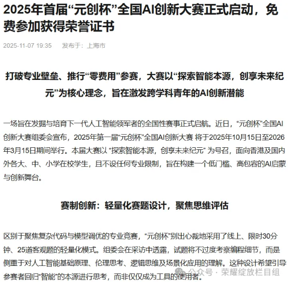 “人工智能不是替代創(chuàng)造力的工具,而是拓展想象力邊界的超級(jí)引擎?!? ——「元?jiǎng)?chuàng)杯」組委會(huì)