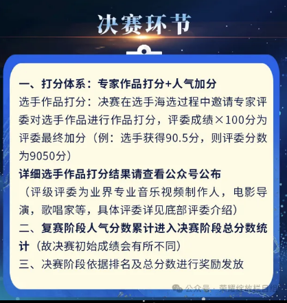 Step2:創(chuàng)作與提交- 利用AI工具進(jìn)行音樂視頻創(chuàng)作,在截止日期前 按要求提交最終作品 (音頻或視頻或圖片文件+簡(jiǎn)短創(chuàng)作說明)。 Step3:初篩入圍- 組委會(huì)進(jìn)行基礎(chǔ)審核(符合主題、技術(shù)應(yīng)用、格式要求等), 公布入圍名單。 Step4:網(wǎng)絡(luò)復(fù)賽展評(píng) - 入圍作品在官方平臺(tái)網(wǎng)絡(luò)展評(píng)。