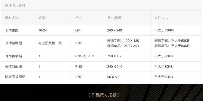 7.作品具體要求:https://sticker.weixin.qq.com/cgi-bin/mmemoticon-bin/readtemplate?t=guide/main#section2topic0