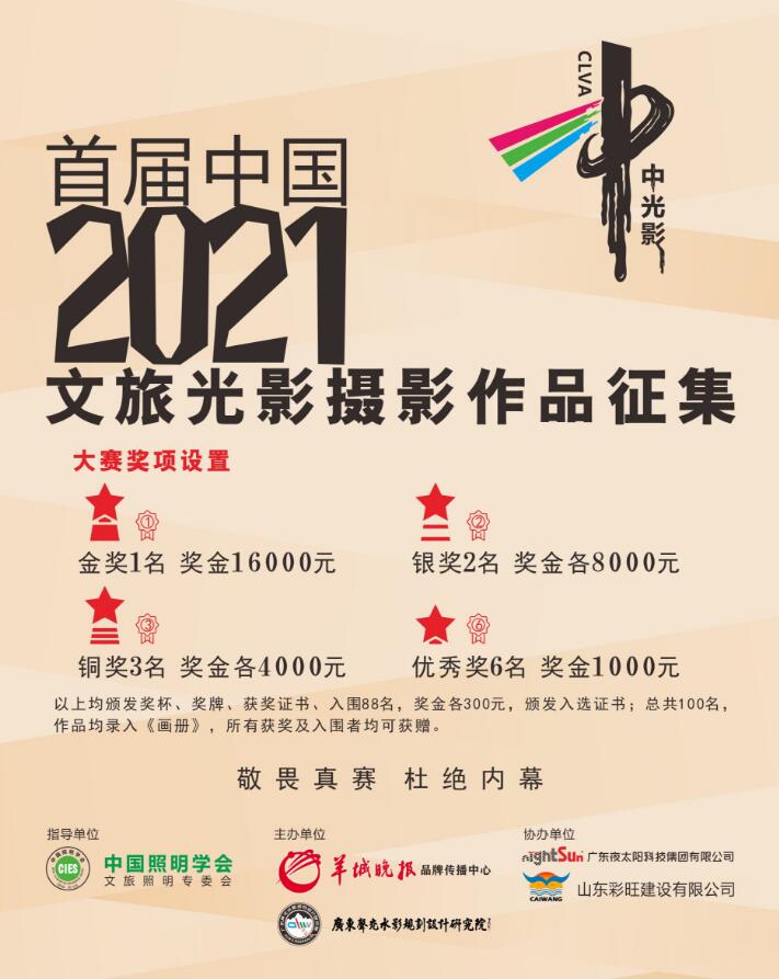 ■大賽頒獎盛典:暫定2021.9.20.在廣州舉行(具體時間地點,待通知),與“中國文旅光影設計大賽”同步啟動、進行。