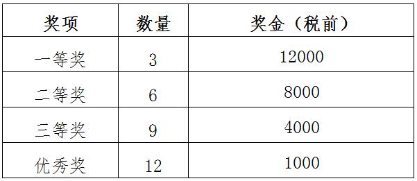 注:獲獎(jiǎng)團(tuán)隊(duì)獎(jiǎng)金為稅前金額,所得稅由大賽秘書處單位代為扣繳。