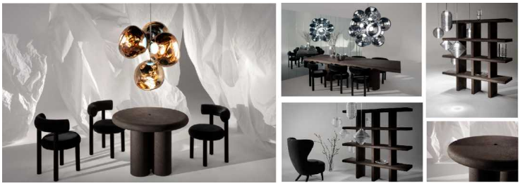 Cork家具系列是一個包括桌子、椅子、置物架的系統(tǒng),由Tom Dixon品牌創(chuàng)意總監(jiān)及宜家設(shè)計師Tom Dixon設(shè)計,為斯堪的納維亞美學(xué)風(fēng)格,采用環(huán)保的軟木和聚氨酯樹脂以93:7的比例作為材料,燒焦的家具具有深棕色色彩,圓潤的輪廓設(shè)計突顯了材料的光澤,對親子家庭十分友好。有趣的是,當密度達到一個標準后,軟木桌子在硬度上不比實木遜色,且肌理和質(zhì)感比混凝土或玻璃更具溫暖及柔和感,這一耐用、吸音、防火、防水的彈性材質(zhì)更受酒店和餐廳的設(shè)計所青睞。