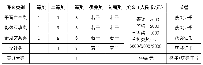 創(chuàng)作快克命題作品,除了正常參評(píng)學(xué)院獎(jiǎng)各類別評(píng)選外,還將直接參與“快克創(chuàng)意實(shí)戰(zhàn)獎(jiǎng)”評(píng)選,本次評(píng)選將由大學(xué)生評(píng)委+網(wǎng)絡(luò)公示+企業(yè)高管+專家評(píng)選構(gòu)成,具體以官方通知為準(zhǔn),每位參賽者都有機(jī)會(huì)擔(dān)任大學(xué)生評(píng)委,每位參賽者都有兩次獲獎(jiǎng)機(jī)會(huì),總獎(jiǎng)金數(shù)113999元人民幣。獎(jiǎng)項(xiàng)設(shè)置如下: