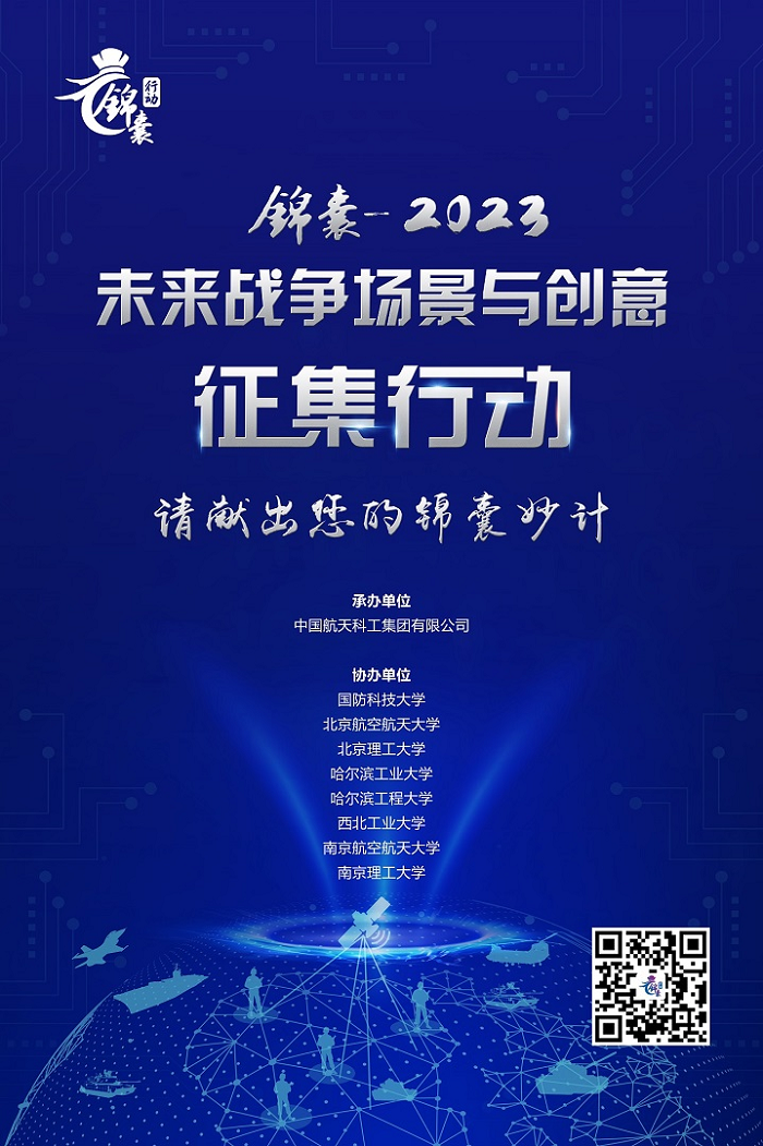 “錦囊-2023”行動,誠邀各類機(jī)構(gòu)、團(tuán)體和個人,暢想未來戰(zhàn)爭形態(tài),設(shè)計未來作戰(zhàn)場景, 圍繞未來戰(zhàn)爭可能面臨的問題研提解決方案建議,探究未來勝戰(zhàn)奧秘。