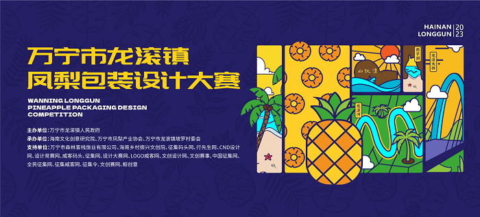 為進(jìn)一步提升萬(wàn)寧市龍滾鎮(zhèn)農(nóng)產(chǎn)品美譽(yù)度與影響力,擴(kuò)大龍滾鳳梨在全國(guó)的知名度與市場(chǎng)占有率,深入推動(dòng)海南省農(nóng)業(yè)品牌建設(shè),以專(zhuān)業(yè)、創(chuàng)新的包裝設(shè)計(jì)賦予龍滾鳳梨新的生命力,海南省萬(wàn)寧市龍滾鎮(zhèn)人民政府舉辦萬(wàn)寧市龍滾鎮(zhèn)鳳梨包裝設(shè)計(jì)大賽,現(xiàn)面向全國(guó)征集包裝與文創(chuàng)設(shè)計(jì)。