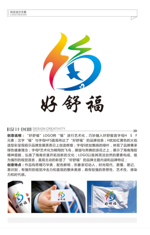 為全面展示海南海膠精神面貌,弘揚(yáng)海南農(nóng)墾文化,打造“好舒?!逼放疲茉臁昂檬娓!毙蜗?,以直觀、簡(jiǎn)潔、易記的方式,提高好舒福知名度和影響力。海南.好舒福品牌于2019年10月17日面向全球各界開展了LOGO征集活動(dòng)。