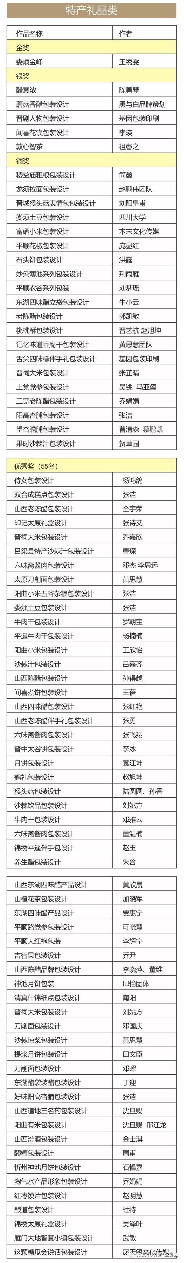 特產(chǎn)禮品類:金獎1名;銀獎5名;銅獎20名;優(yōu)秀獎55名