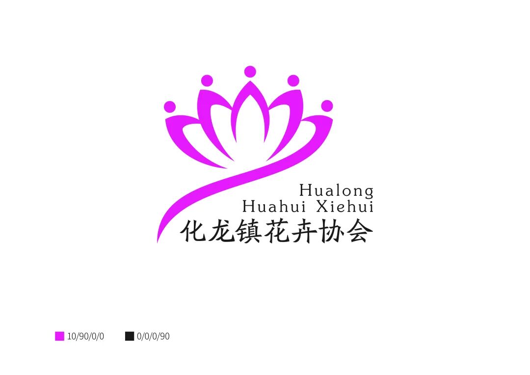 1.標識外圈以“圓形印章為設計結構,象征圓滿、和諧和向心力、寓意了協(xié)會團結齊心、共構化龍鎮(zhèn)花卉事業(yè)美好明天