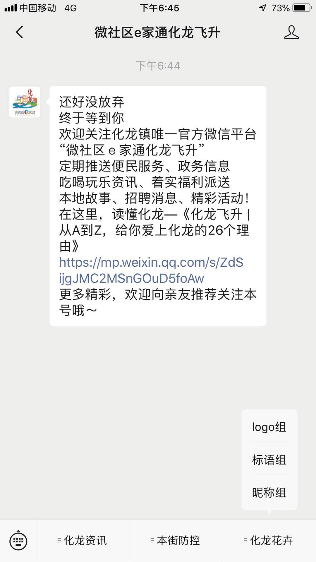 (1)關注化龍鎮(zhèn)關注“微社區(qū)e家通化龍飛升”