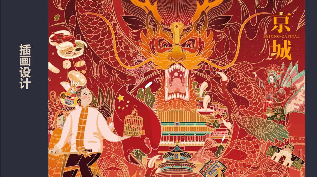 項(xiàng)目簡(jiǎn)介:京中軸線是世界城市建設(shè)史上承載民族傳統(tǒng)文化和哲學(xué)的典范,從中提取標(biāo)志性建筑造型元素,如公園遛鳥(niǎo)大爺、冰糖葫蘆、前門(mén)戲樓、天安門(mén)廣場(chǎng)冉冉升起的五星紅旗、天壇等融入設(shè)計(jì)中,加以現(xiàn)代藝術(shù)化處理,線條簡(jiǎn)潔利落,結(jié)合北京紅墻黃瓦的色彩元素.本次設(shè)計(jì)的理念是將文化遺產(chǎn)記憶帶回家,通過(guò)中軸線載體衍生出與人們生活息息相關(guān)的系列文創(chuàng)產(chǎn)品,拉近與文化遺產(chǎn)的距離。設(shè)計(jì)產(chǎn)品命名為“京城”,采用插畫(huà)、保溫杯、筆、本、書(shū)簽、不碎鏡、梳子、移動(dòng)電源、包掛、永恒筆、多功能充電寶風(fēng)扇等多種形式。